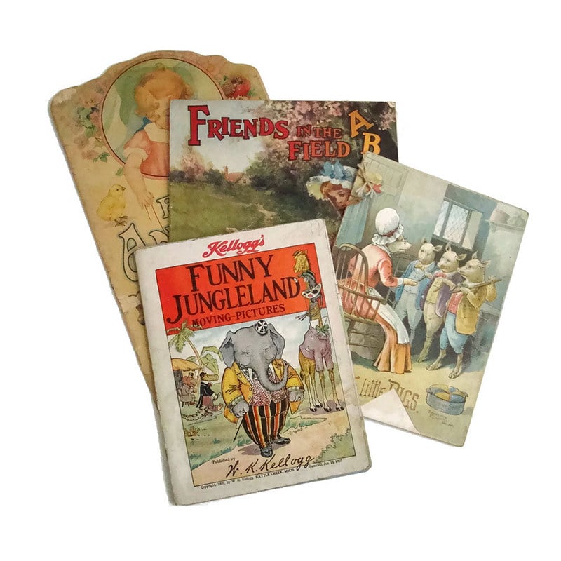 The very first cereal box prize, this booklet came as a free in-store promotion with the purchase of two boxes of Kellogg’s Corn Flakes starting in 1907. This three-panel flapped booklet included illustrations of animals with hinged panels that let you switch around the heads, bodies, and feet of different animals. It was incredibly popular and quickly became a mail-offer premium, with multiple editions and millions of copies distributed through 1937. This humble flip book started the entire cereal prize phenomenon.
