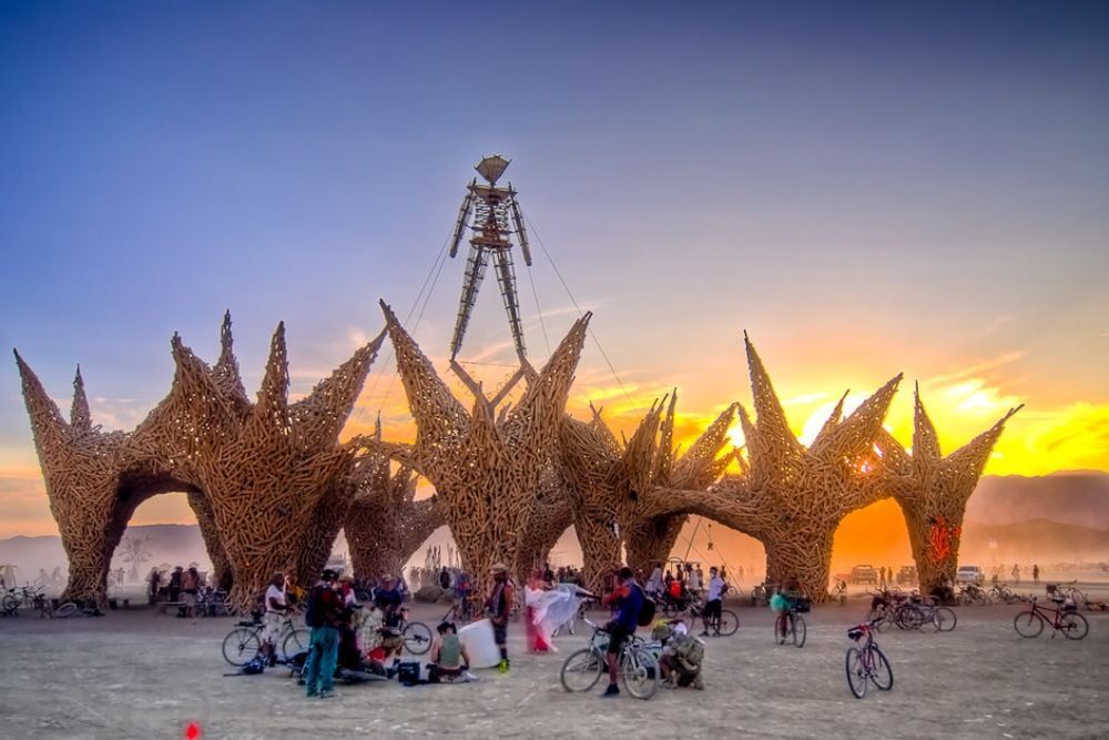 This desert gathering known for its massive art installations and temporary community began in 1986 as a small bonfire ritual on San Francisco’s Baker Beach. Founder Larry Harvey and a few friends burned an 8-foot wooden figure as a spontaneous act of self-expression with just 20 people in attendance.