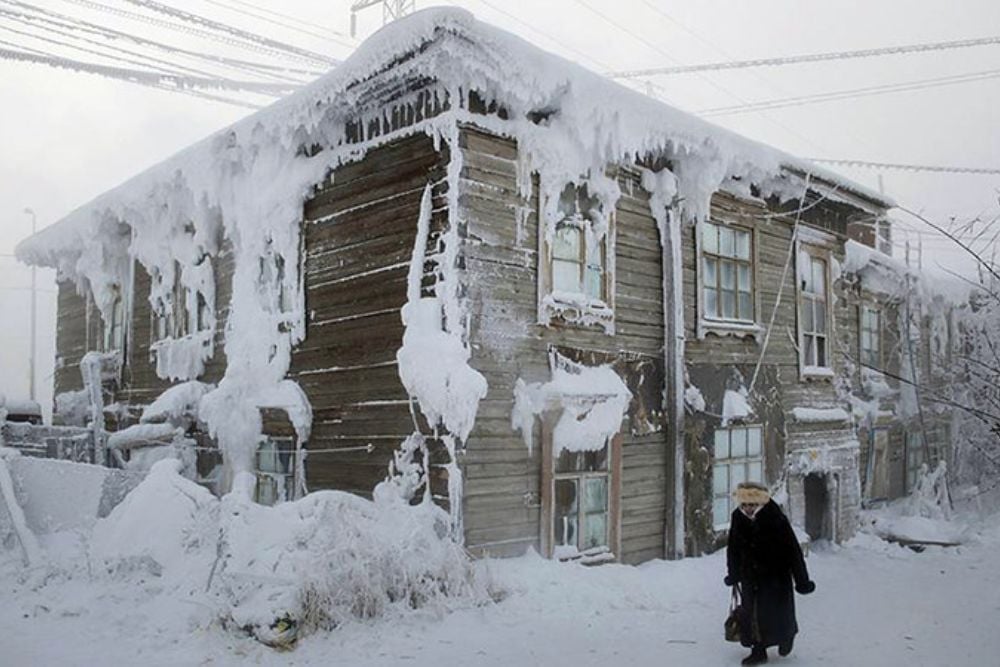 Welcome to the coldest permanently inhabited place on Earth, where winter temperatures regularly drop to -58°F and the record low hit a staggering -96.16°F in 1924. About 500 hardy souls live in this Siberian village, where car engines must run continuously during winter months or they’ll freeze solid.
