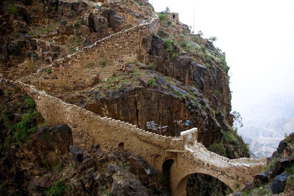 This fortified village sits 8,530 feet above sea level on a mountain peak that’s connected to the outside world by a single stone bridge built in the 17th century. The village remained hidden from the outside world until the 1960s when aircraft spotted it during the Yemeni Civil War.
