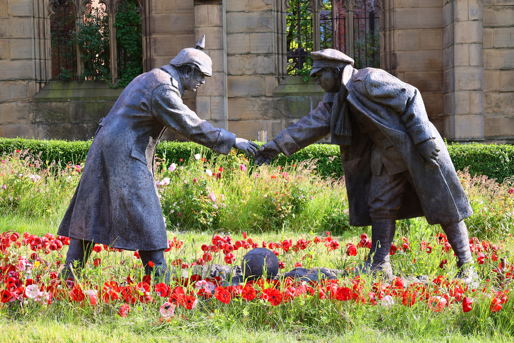 During the first Christmas of World War I, soldiers from both sides spontaneously stopped fighting along parts of the Western Front. They sang carols, exchanged gifts, and even played soccer in no man’s land. Military leadership quickly suppressed this fraternization, but had this goodwill spread and persisted, the war might have ended years earlier, potentially averting millions of casualties.