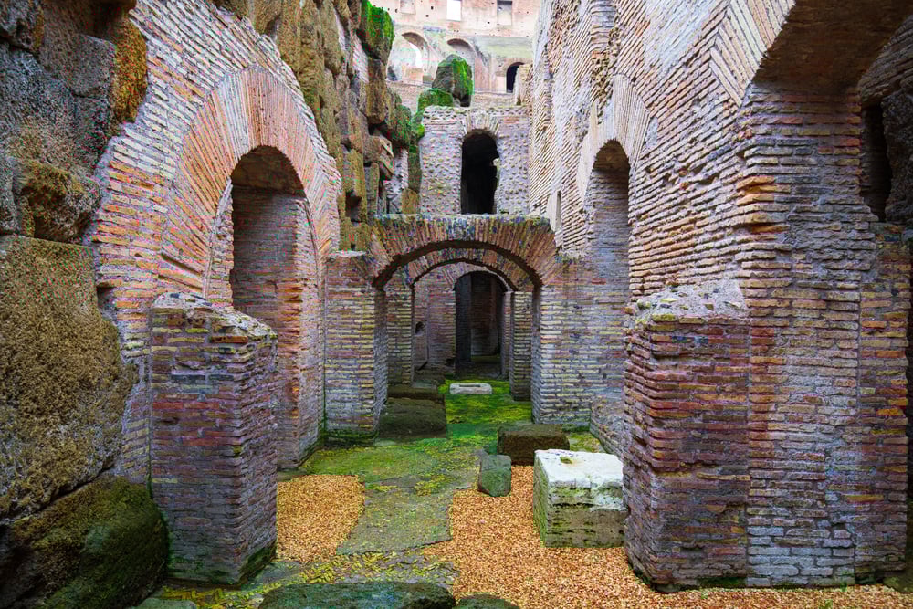 Beneath the arena floor stretched the hypogeum, a maze of tunnels, cages, and mechanical lifts. Gladiators, wild animals, props—waiting below until their dramatic reveal.