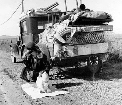The combination of the Depression and the Dust Bowl triggered one of the largest internal migrations in American history. About 400,000 people from Oklahoma alone packed their belongings and moved to California between 1930 and 1940.