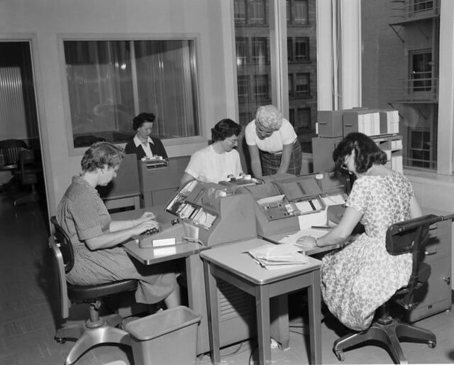 Professional typists were essential workers in every office during the 70s. They spent their days transforming handwritten documents, dictated recordings, and rough drafts into clean, typed pages using typewriters.