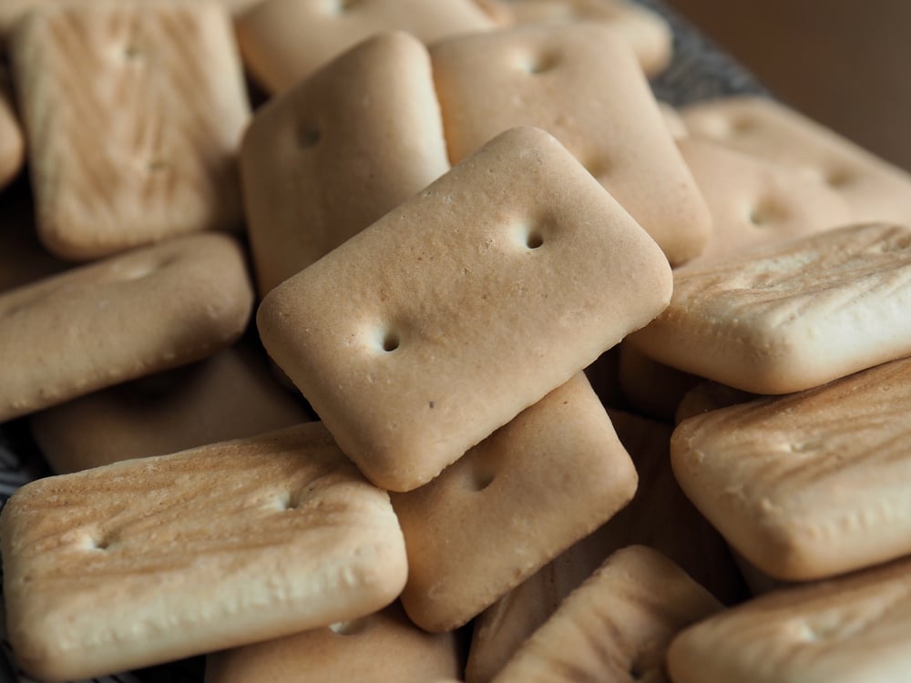 Hardtack is one of the oldest surviving foods still recognizable today. It’s a thick, dry cracker made from flour, water, and salt — baked until almost all moisture is gone so it won’t mold.