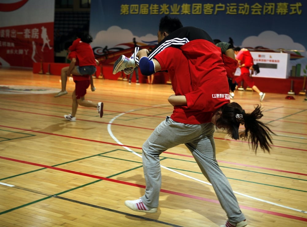 Finnish men race through obstacle courses while carrying women on their backs. There are actual rules about how to carry your partner – most guys use the “Estonian carry” where the woman hangs upside down with her legs around his shoulders.