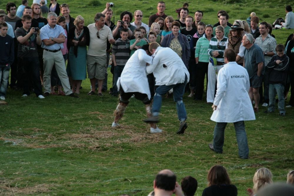 Traditional English sport where two people try to kick each other’s shins until someone falls over. Heavy boots are required, and you can stuff straw in your pants for protection.