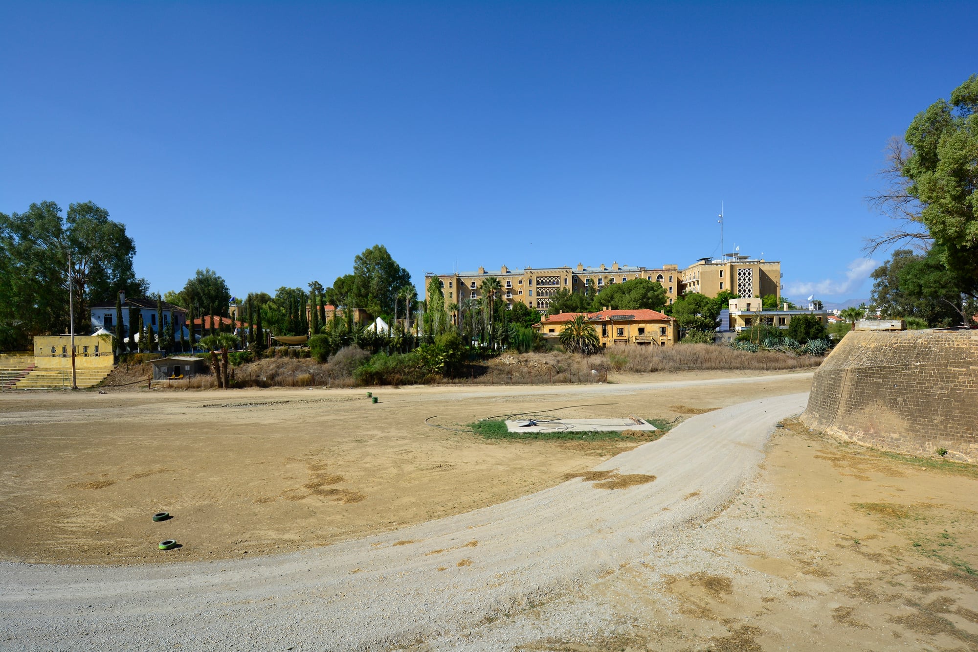 The Green Line, which separates the island of Cyprus, has been under the supervision of United Nations peace forces since the 1970s. Though it has not been completely walled off, it has been fortified with some walls, checkpoints, and restricted areas.
