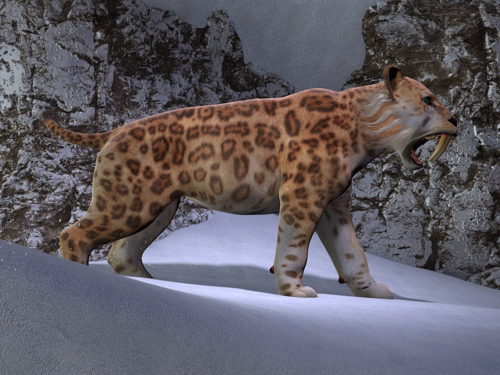 Not quite a real tiger, the saber-toothed cat often gets mislabeled by animated shows. With fangs nearly half a foot long, Smilodon’s grin looked fierce – mouth shut or not.