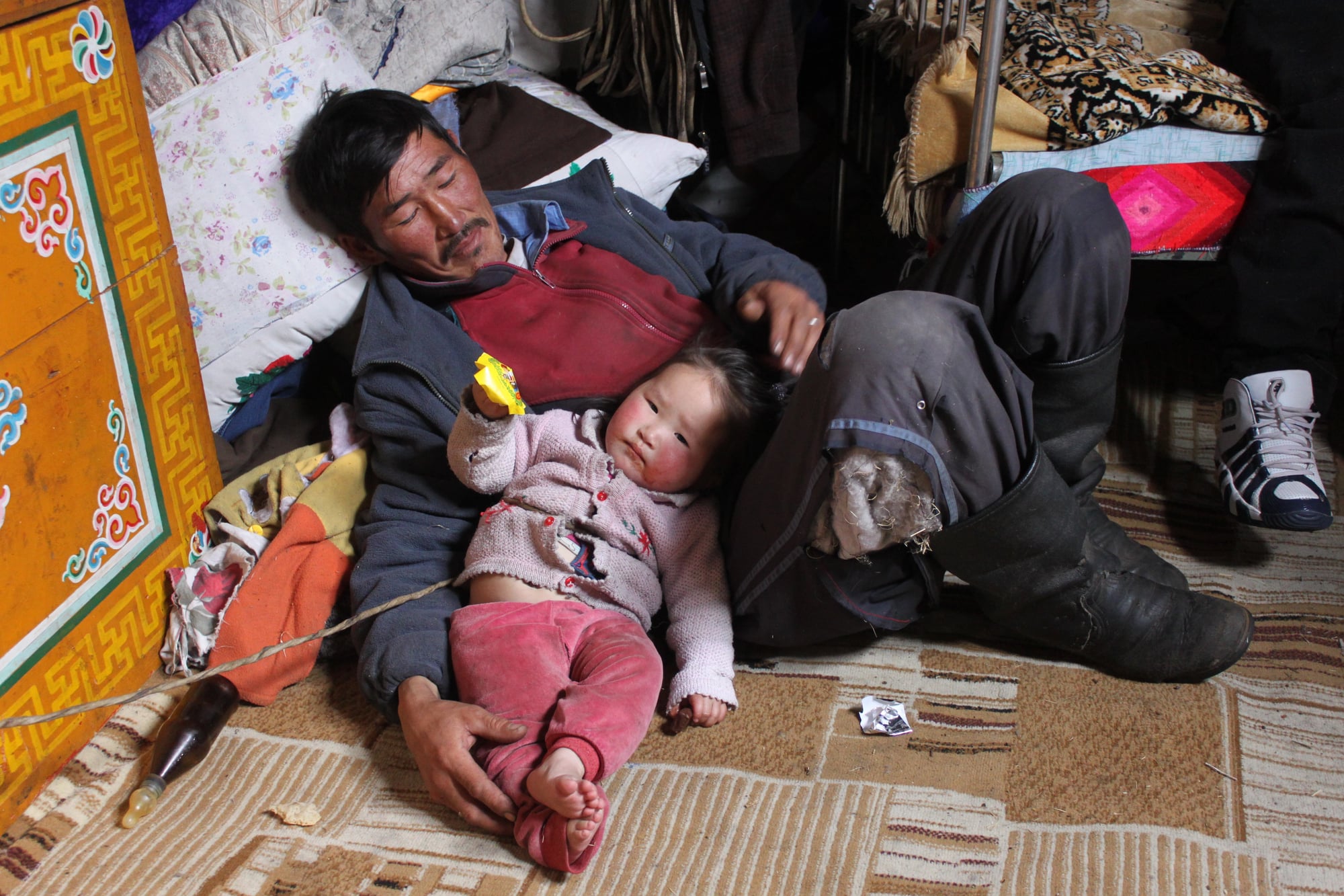Mongolian families in traditional gers (yurts) arrange sleeping areas around the central fire pit according to strict cultural protocols. Eldest family members sleep in the most honored positions while younger members and guests receive designated spots.