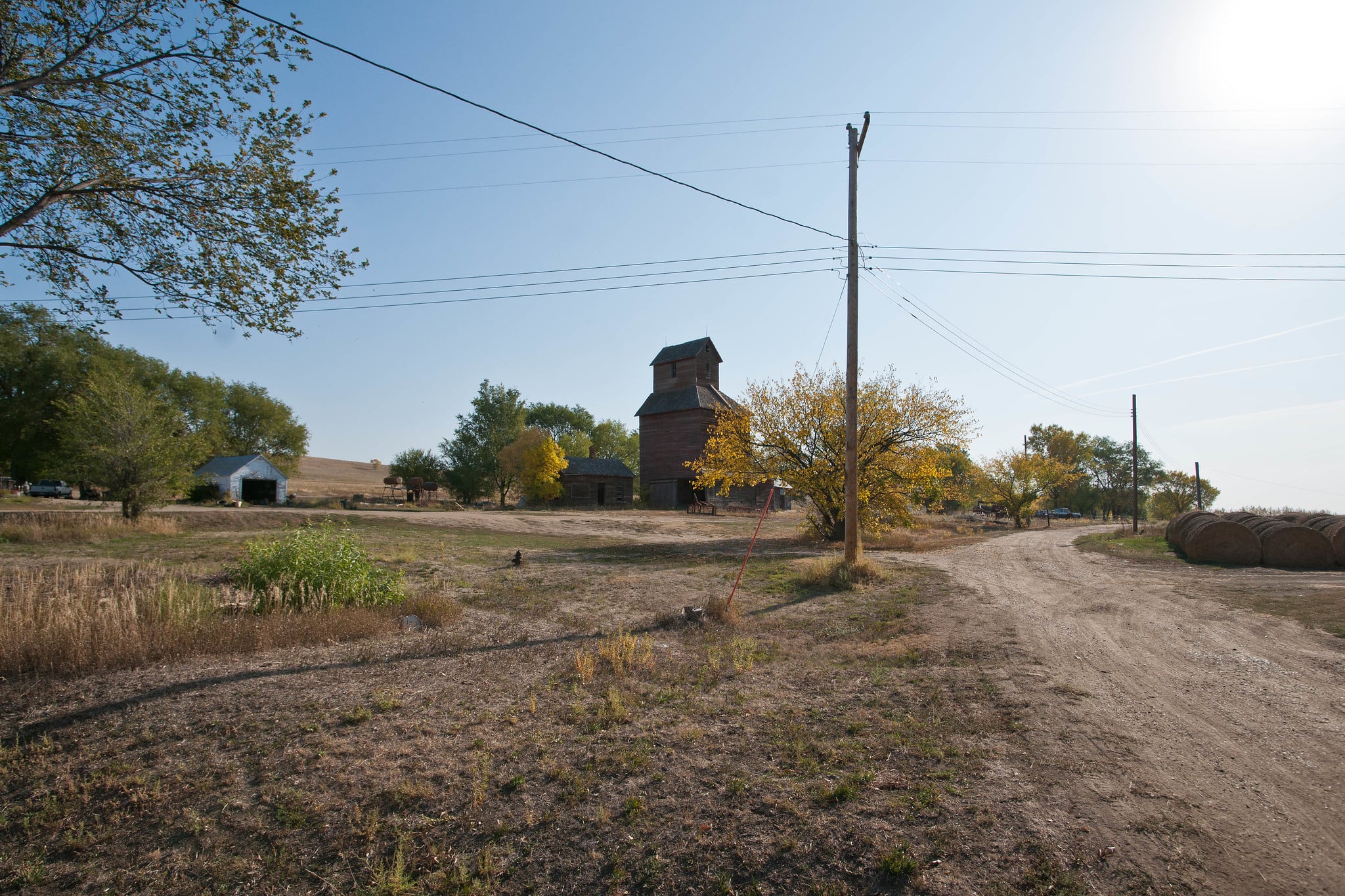 Ruso was settled by Russian immigrants and incorporated in 1909. At its height, it had a bank, a grain elevator, a Lutheran church, a hotel, and even a jail that eventually became a blacksmith shop.