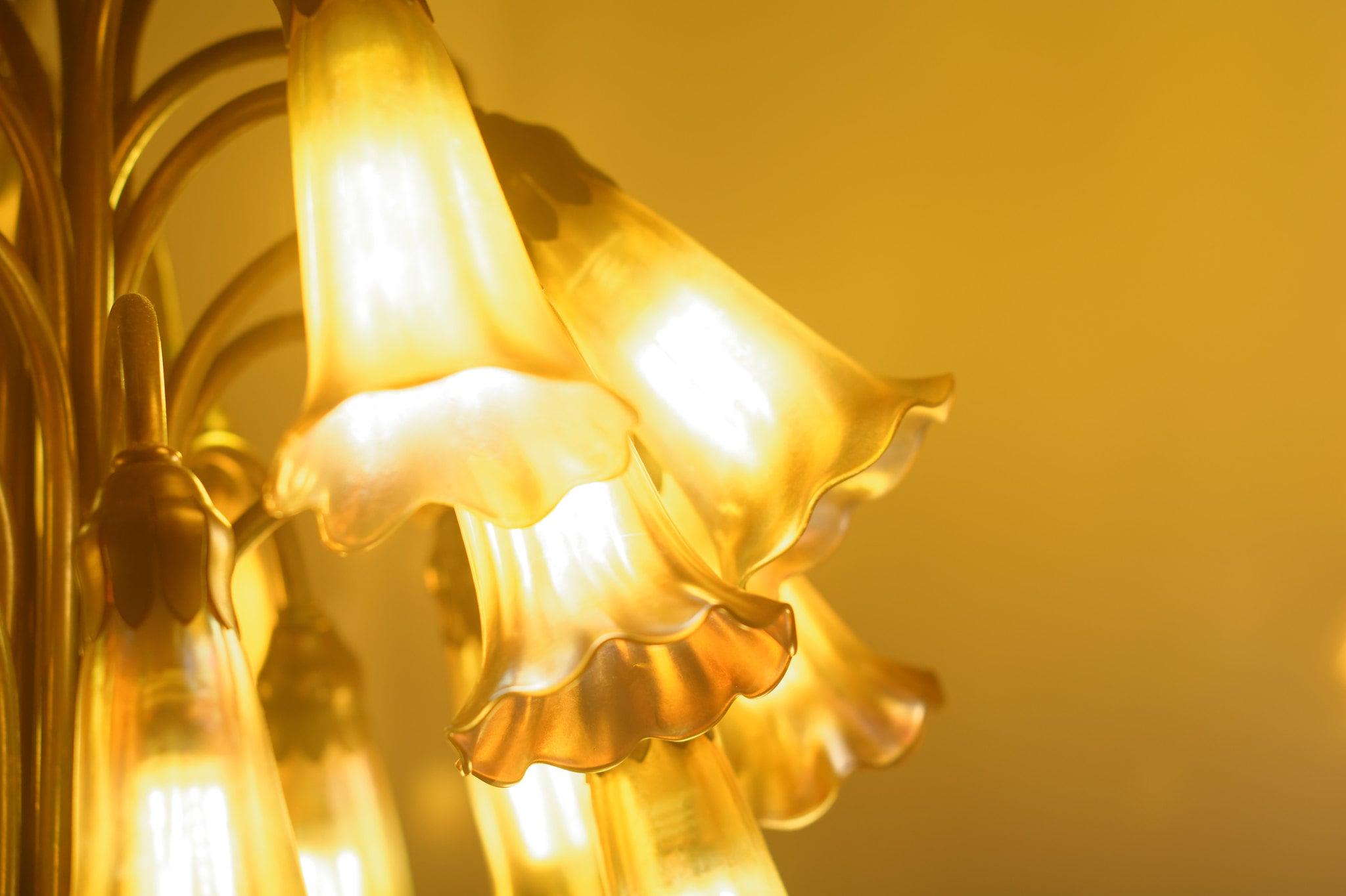 Another Tiffany creation, this lamp’s design mimics water lilies floating on a pond, with glass shades in graduated blues and greens.