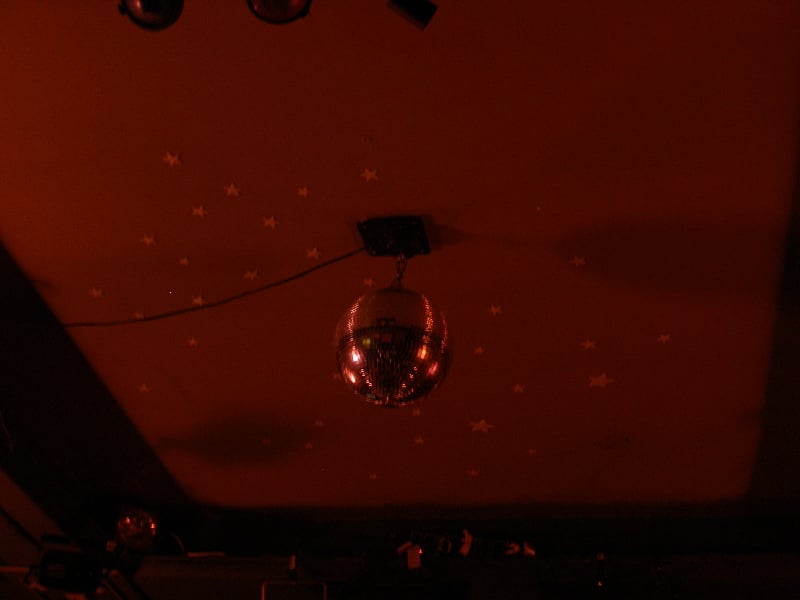 Tiny plastic shapes scatter across the ceiling. When the lights go out, a faint galaxy appears overhead.