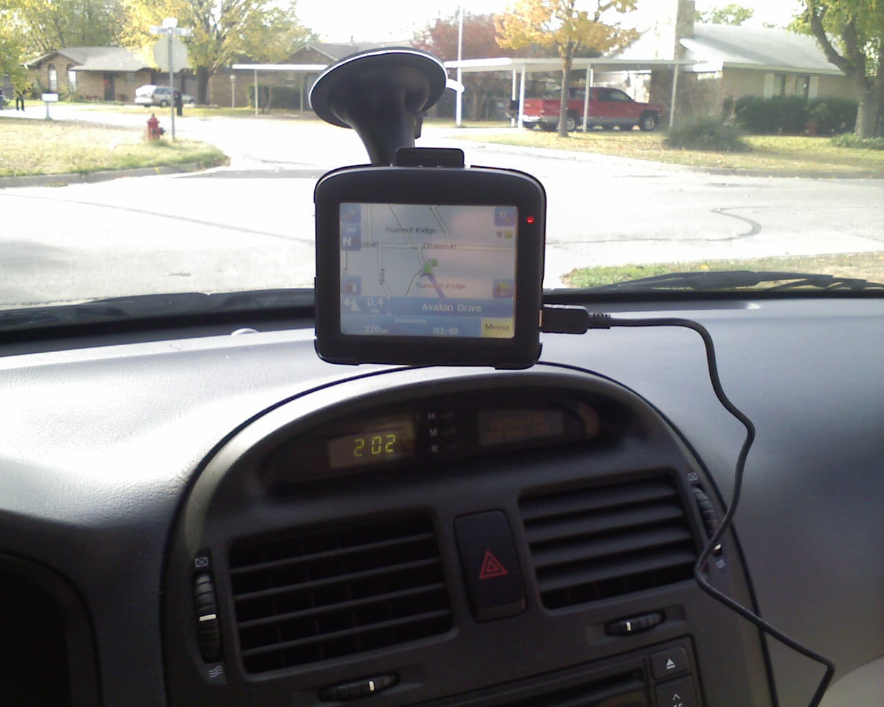 A Photo Of A Bulky GPS Unit Mounted To A Dashboard