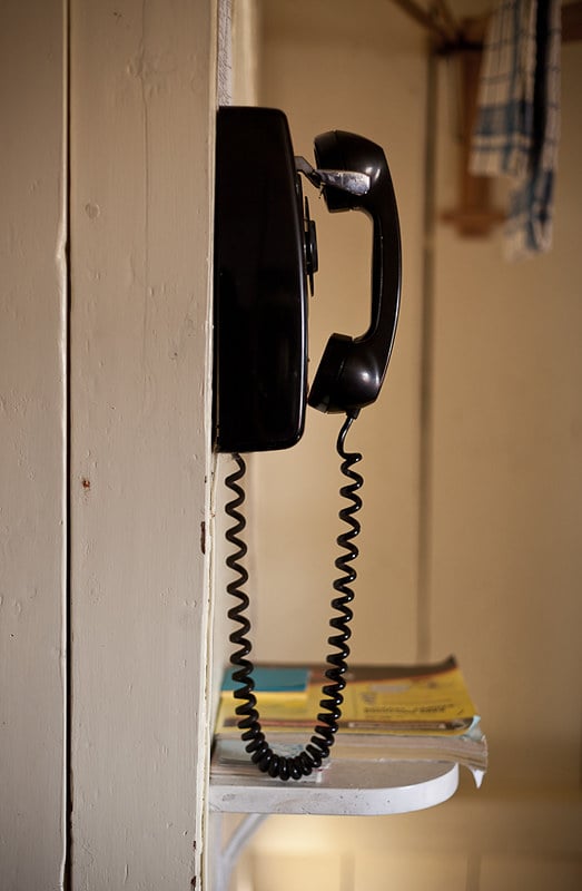 The cord stretches dangerously tight. There was no speakerphone, no group chat, no texting.