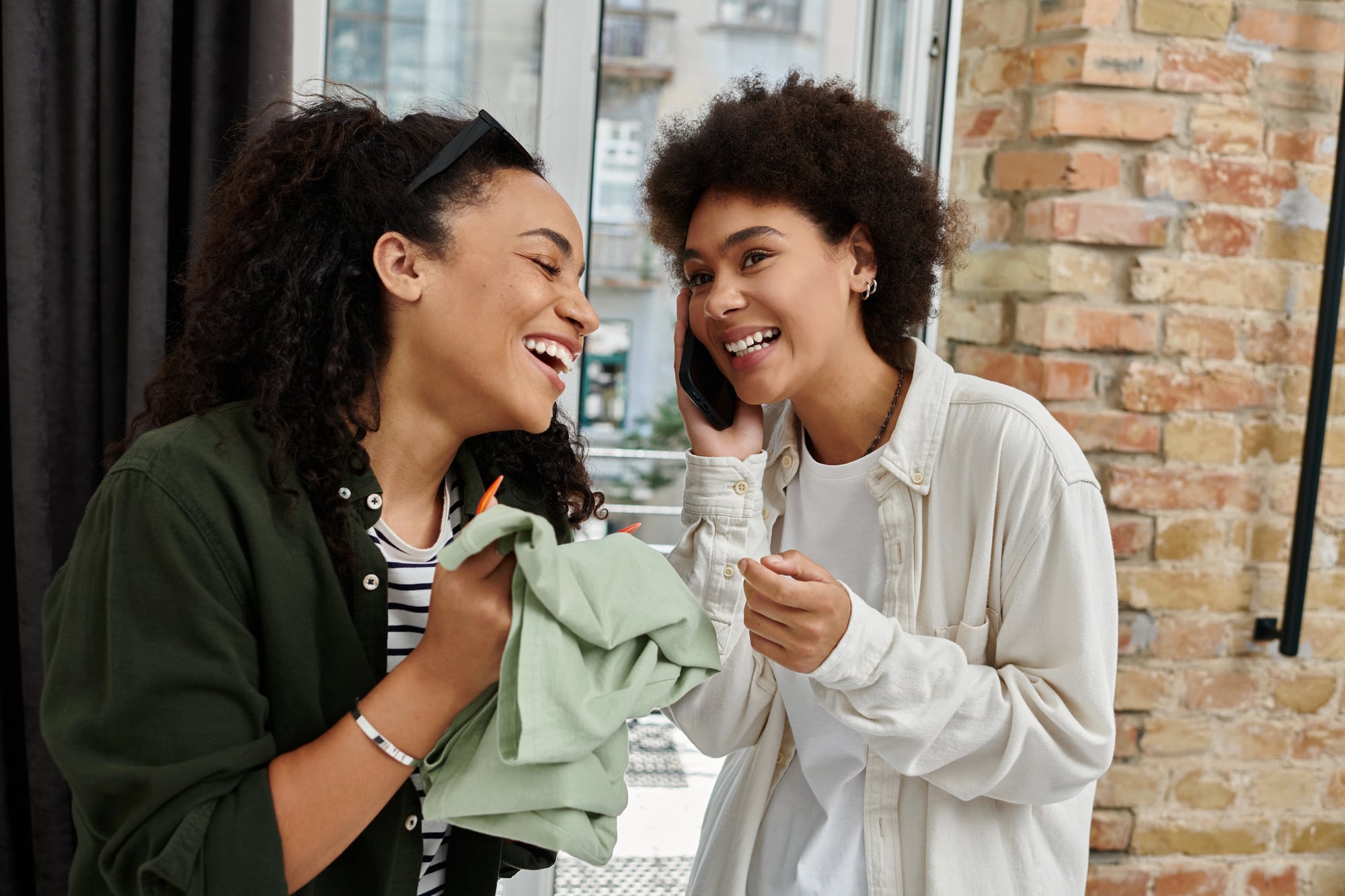 One person holds the receiver. Everyone else leans in to hear.