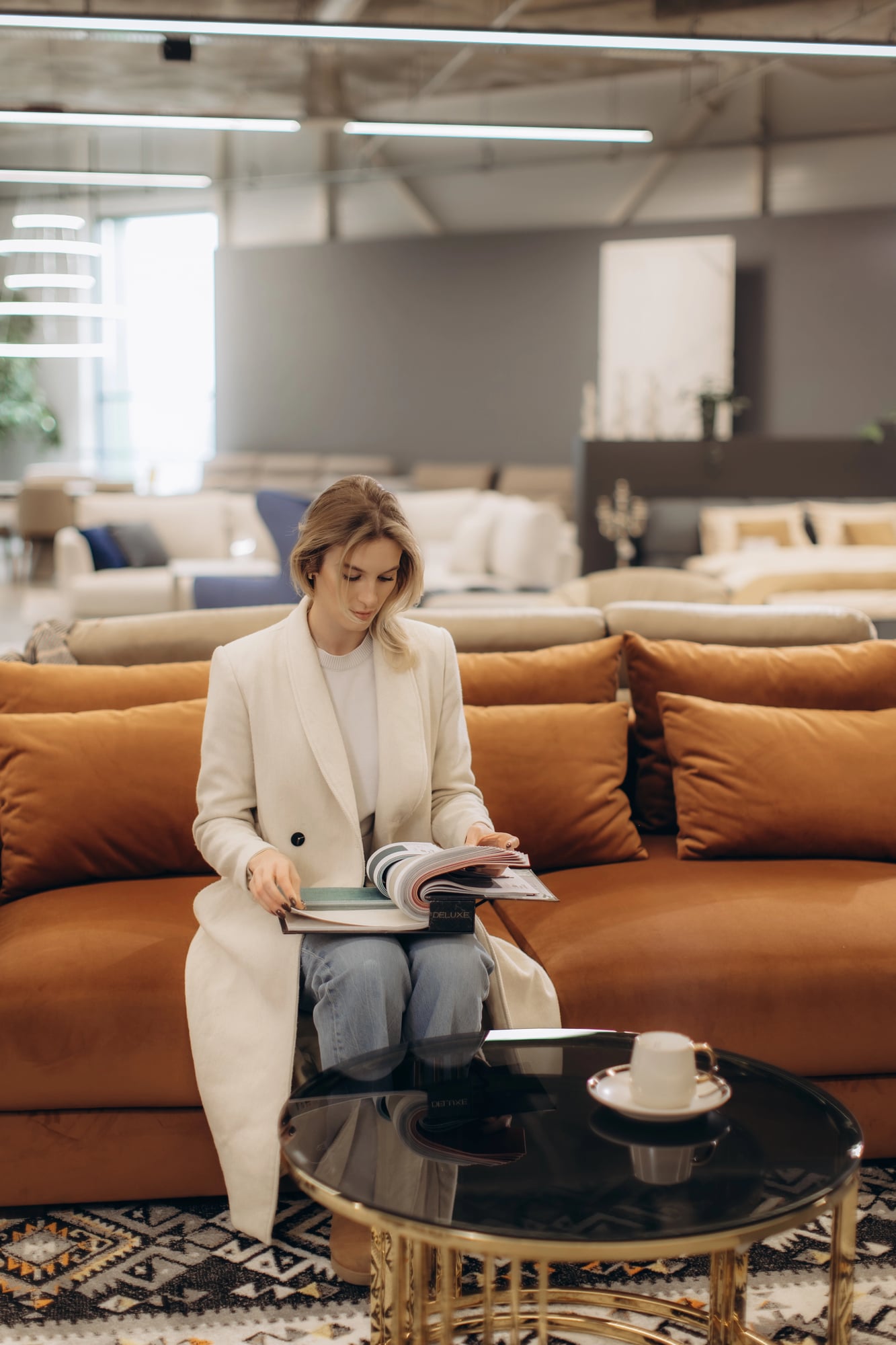 The texture dominates the background. Furniture patterns feel bold and unmistakably dated.