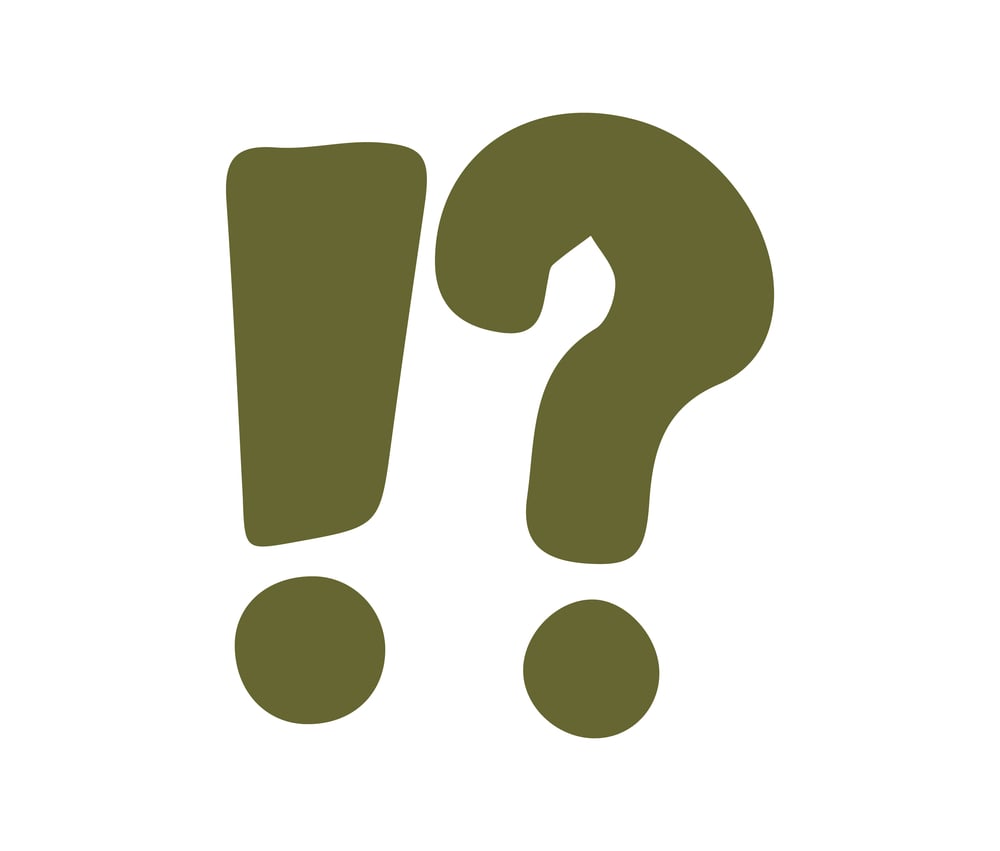 A single mark doing double duty: part doubt, part amazement. Shaped like a smashed-together ? and !, often seen as ‽.