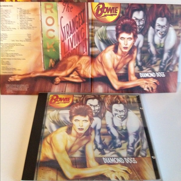 David Bowie’s Diamond Dogs featured artwork by Belgian painter Guy Peellaert. The front cover showed Bowie looking strange but relatively tame.