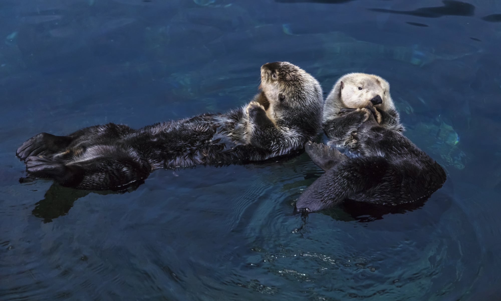 Sea otters hold hands