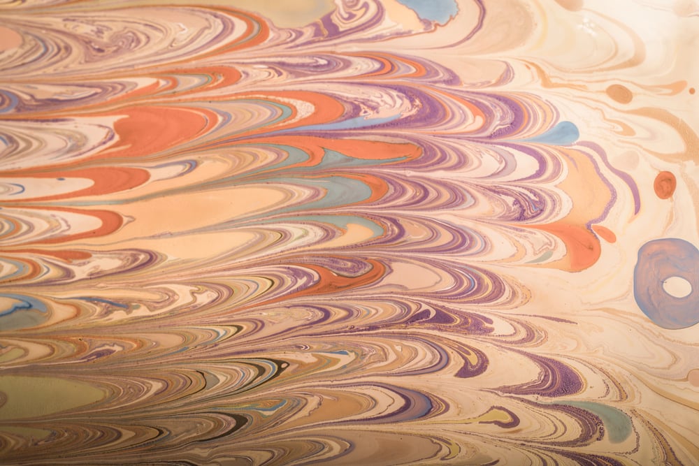 Ottoman artists floated paints on thickened water, creating swirling patterns that they transferred onto paper in designs impossible to replicate exactly.