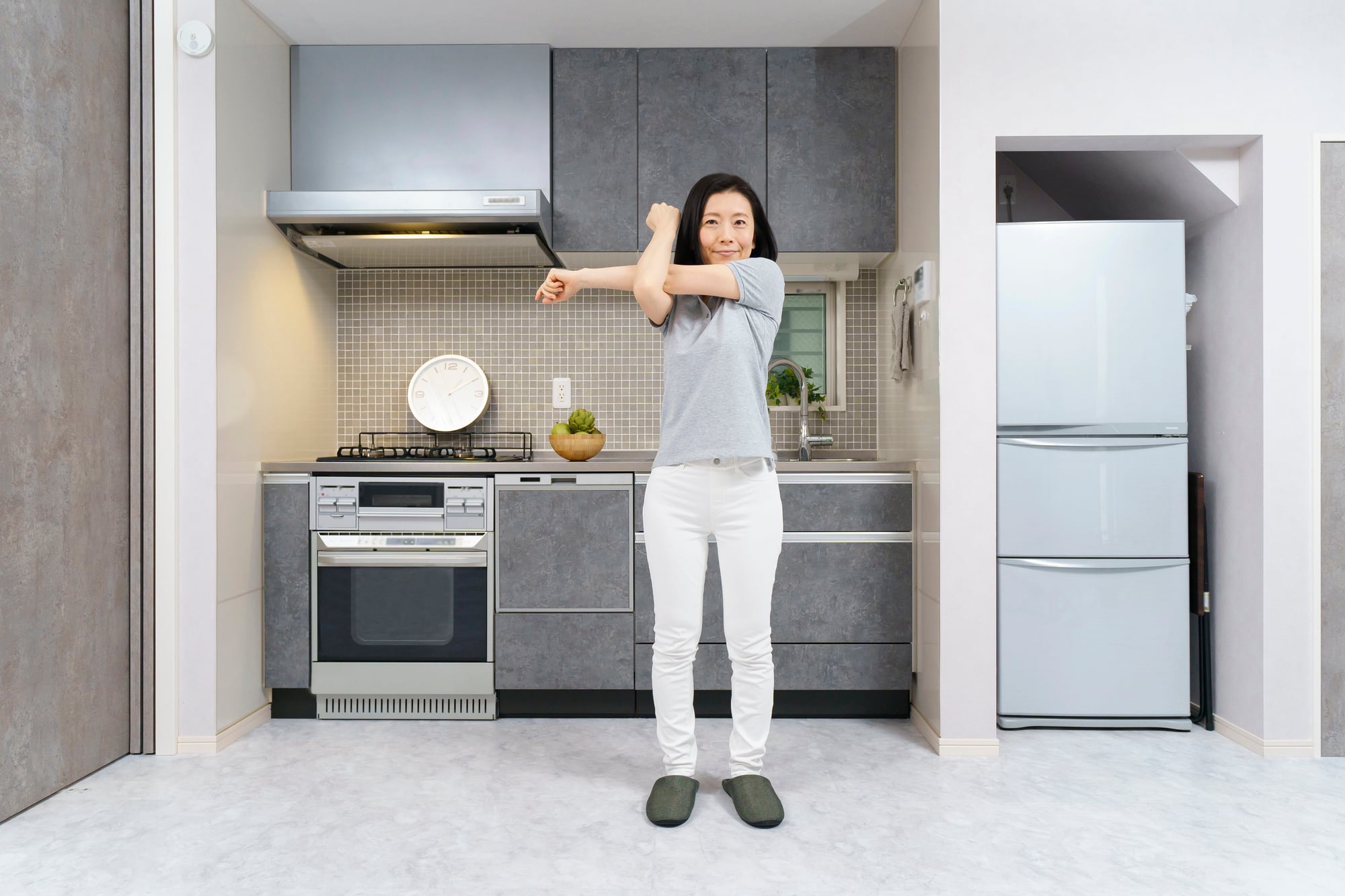 Simple stretches can fix this. Reach your arms overhead.