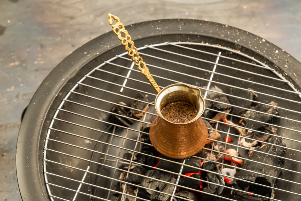 The sand distributes heat evenly and allows for precise temperature control by moving the pot closer to or further from the center of the heat source. It’s slow, requires attention, and produces a thick, aromatic brew.