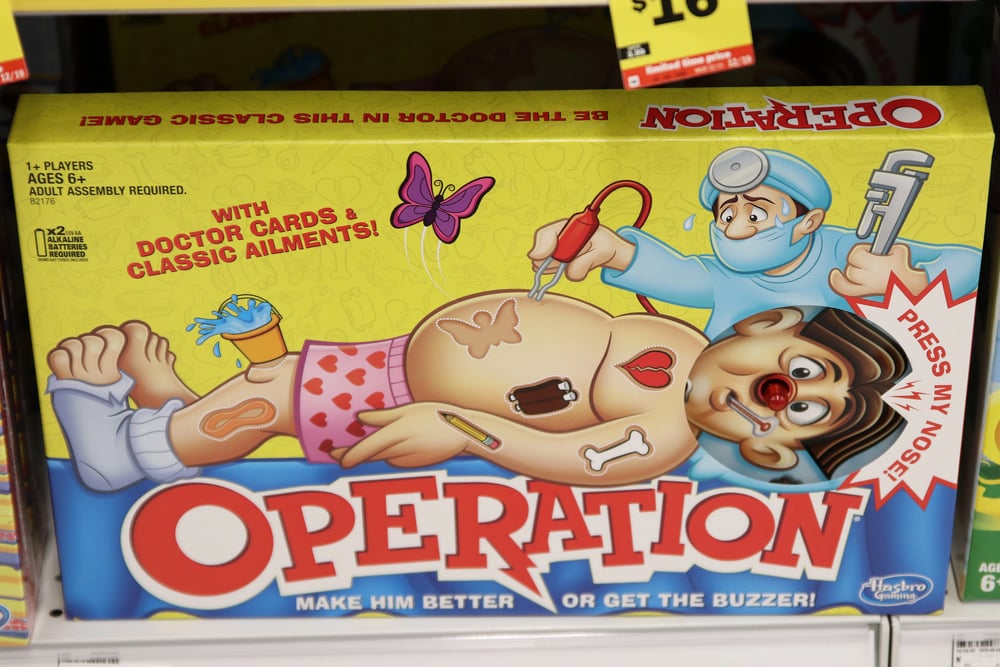 The electronic surgery game seems safe enough, but those metal tweezers can conduct more electricity than intended. Some older versions gave players stronger shocks than expected, causing burns on fingertips.