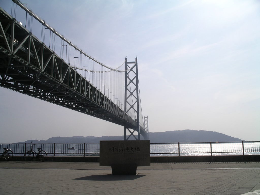 The entire bridge measures 12,831 feet long. Engineers built this bridge to connect Kobe to Awaji Island across the turbulent Akashi Strait.