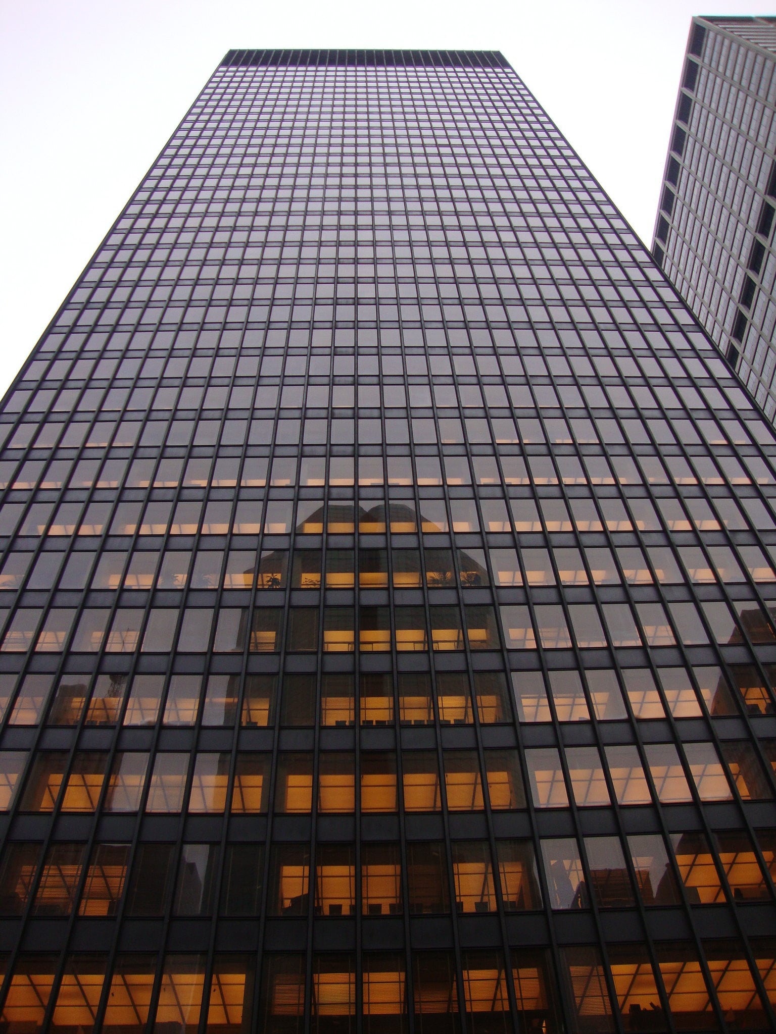 The building’s bronze and glass façade used expensive materials in ways that prioritized aesthetics over pure economy.