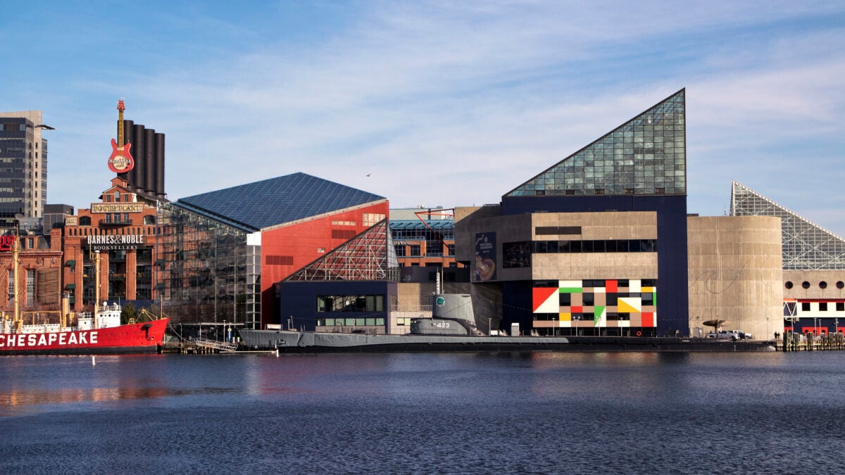 Baltimore sits 50 miles from Washington, D.C. The city offers historic neighborhoods, the Inner Harbor, and access to Chesapeake Bay.