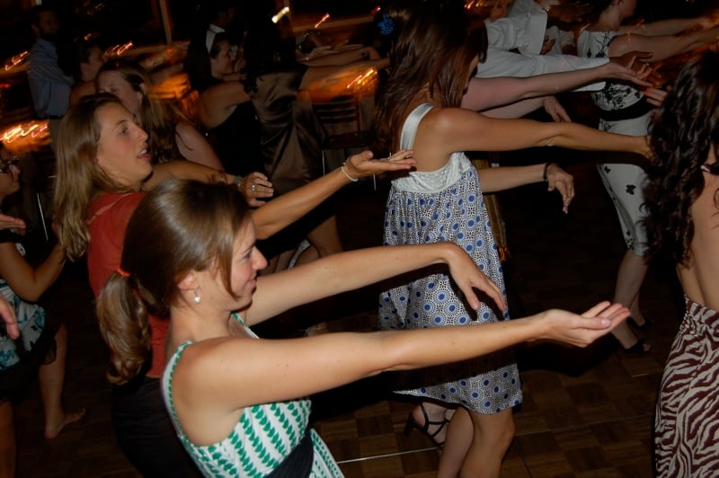 Line dances had their moment, and this one stuck around longer than most. Four steps right, four steps left, three steps back, stomp, step forward, turn.