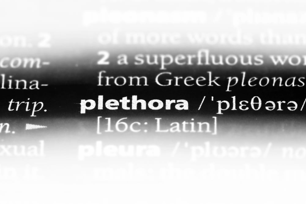 Plenty of people think plethora is just a fancy word for ‘a lot’, but it carries more weight than that. A plethora specifically means an excessive amount, more than you need or want.