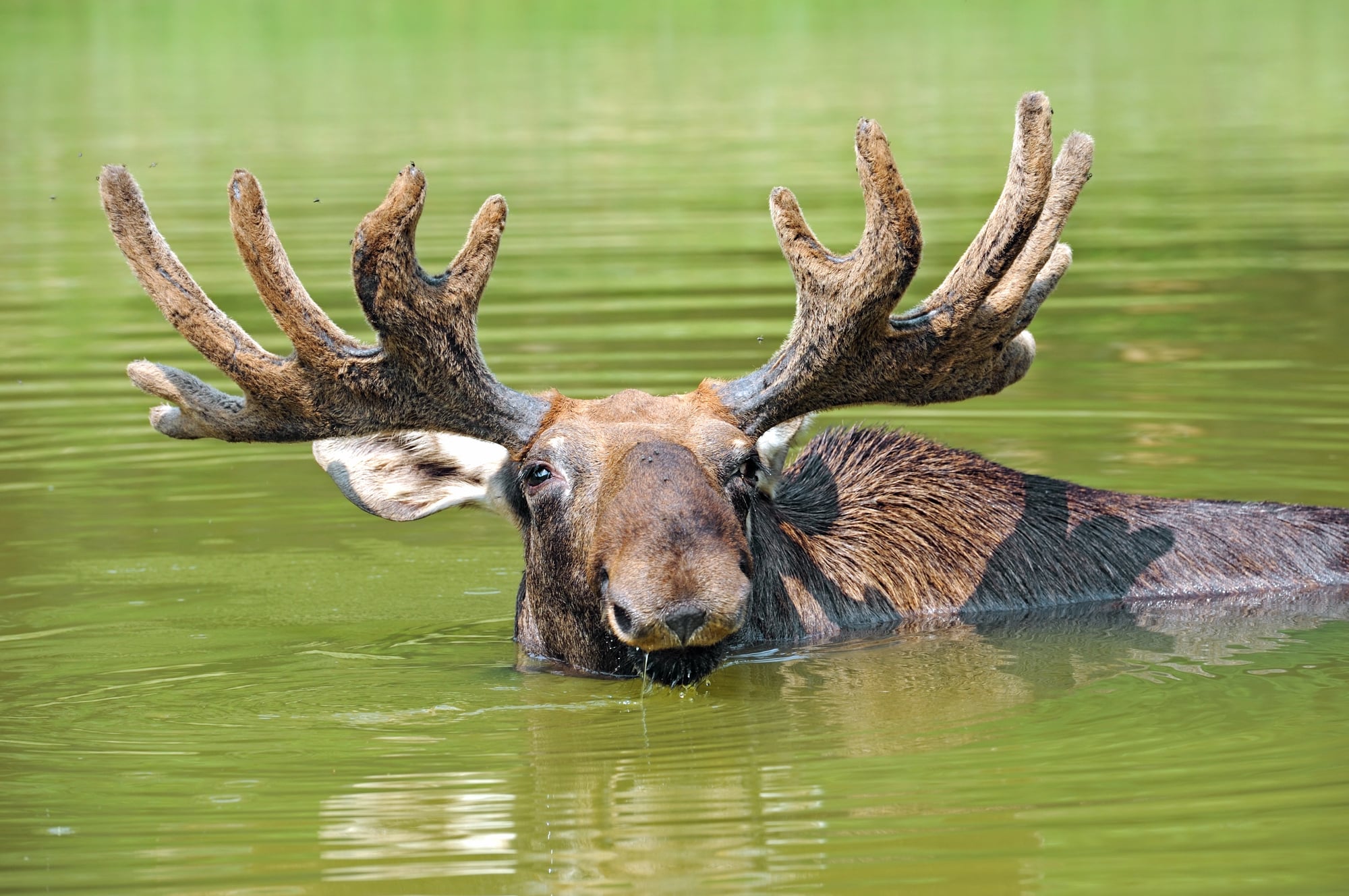 These animals take to water without hesitation and can swim for several miles if needed. Their hollow guard hairs trap air, which helps them float and provides insulation in frigid water.