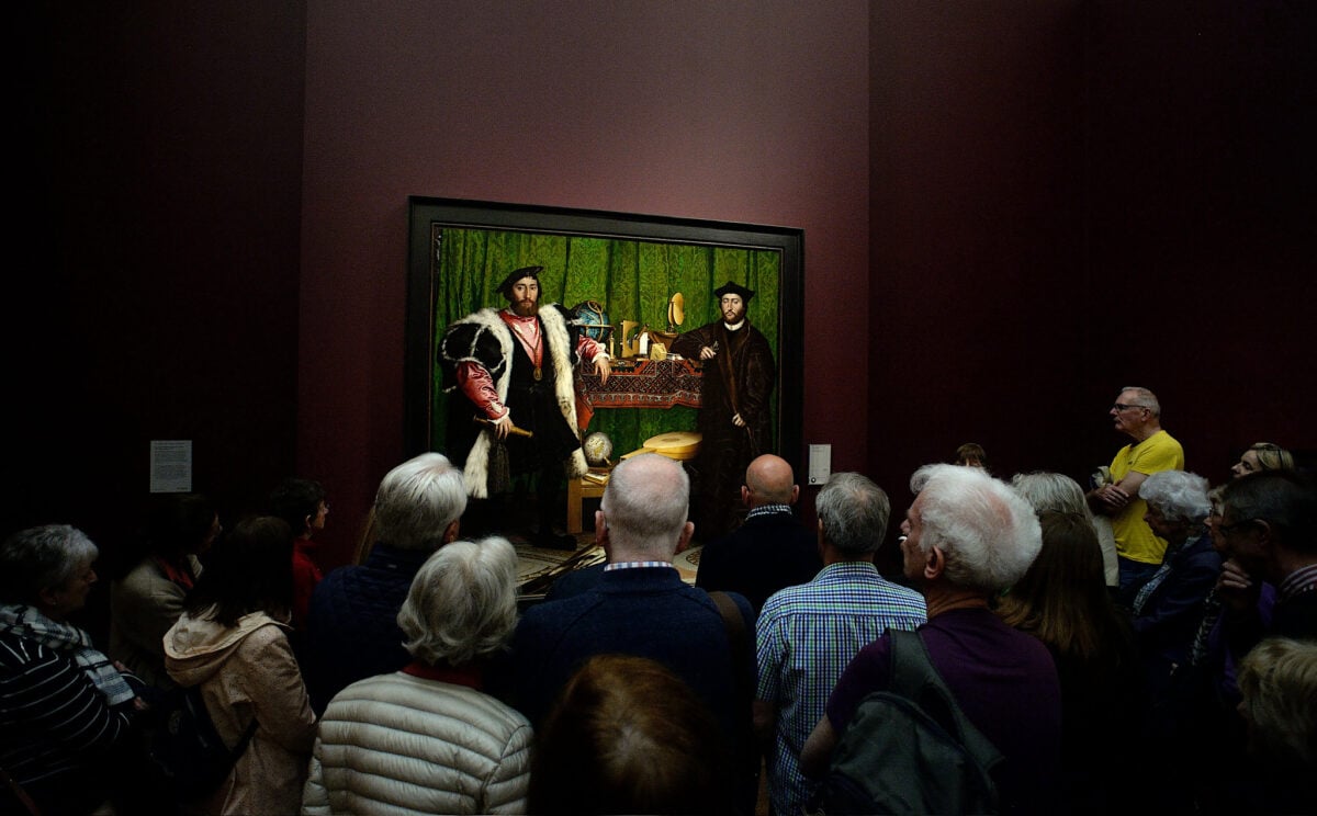 Hans Holbein painted this double portrait in 1533, and it’s stuffed with objects that scream ‘we’re important and educated.’ The two wealthy men are surrounded by scientific instruments, musical tools, and books—basically a resume in paint form.