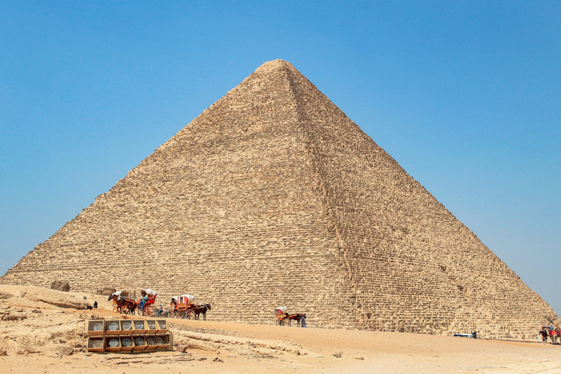 One after another, 2.3 million stone pieces make up the Great Pyramid of Giza – each one tipping the scale anywhere from 2.5 to 15 tons. Stretch them out in a line, you’d reach nearly halfway around the planet.