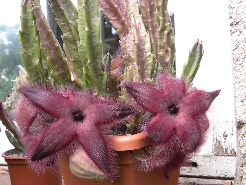 These South African succulents are often called ‘carrion flowers’ because many species have mastered the art of smelling like roadkill. Their star-shaped flowers emit a putrid odor that would make a skunk proud, though not all species are covered in hair.