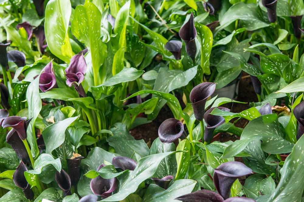 The black calla lily isn’t truly black—it’s deep purple, so dark it looks black in certain light. Some varieties carry a faint chocolate scent, though it’s not as strong as the chocolate cosmos.
