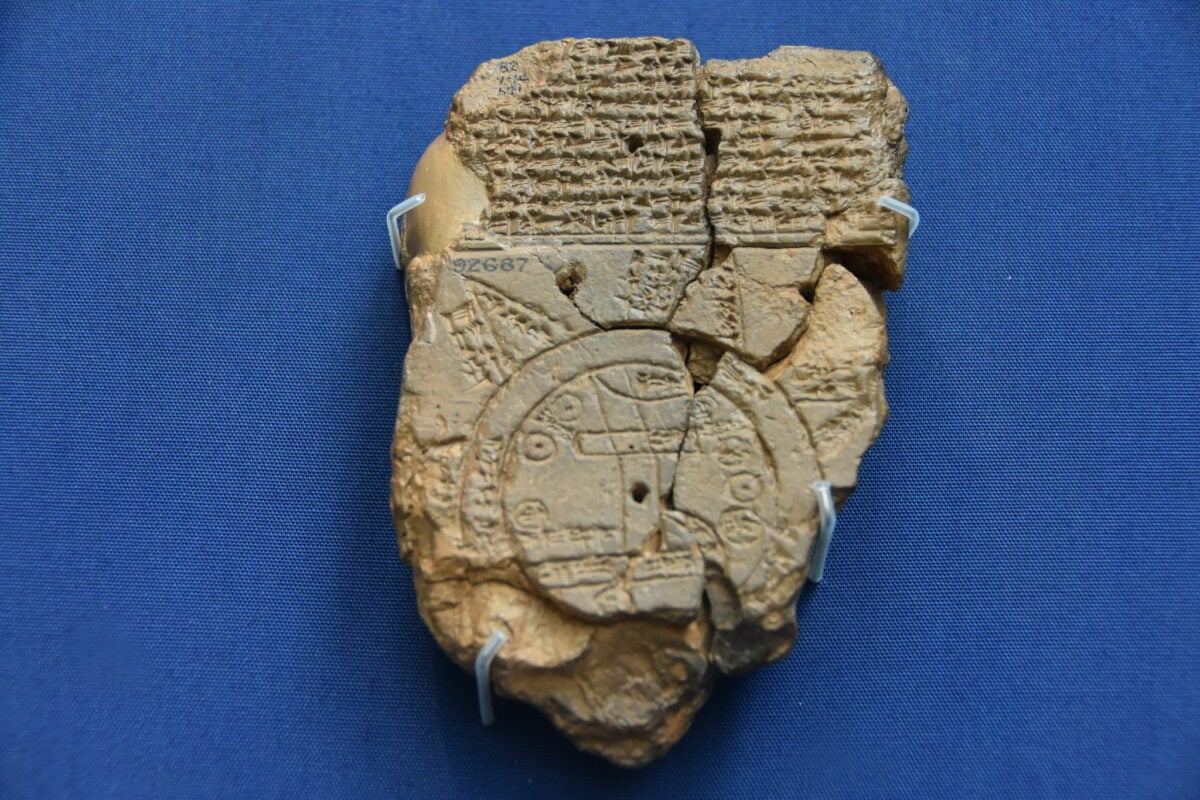 Created around 600 BC, this clay tablet represents one of the earliest known attempts to map the entire world. The Babylonians placed their city at the center, surrounded by a circular ocean and distant lands they called ‘regions beyond’.