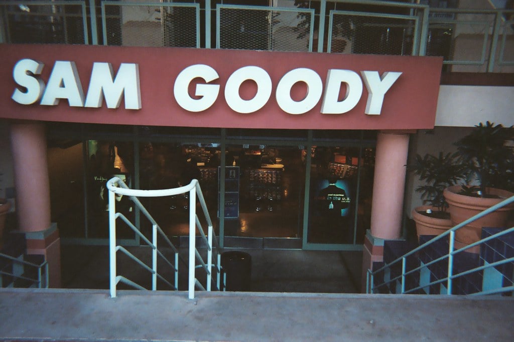 Music stores felt important before streaming existed. Sam Goody had walls of CDs organized by genre, with the new releases prominently displayed up front.