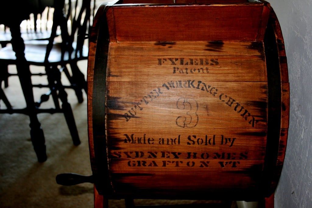 Making butter by hand required agitating cream in a wooden or ceramic churn for an extended period — sometimes an hour or more — until the fat separated and solidified. The churn was a standard piece of household equipment across most of the world for centuries.
