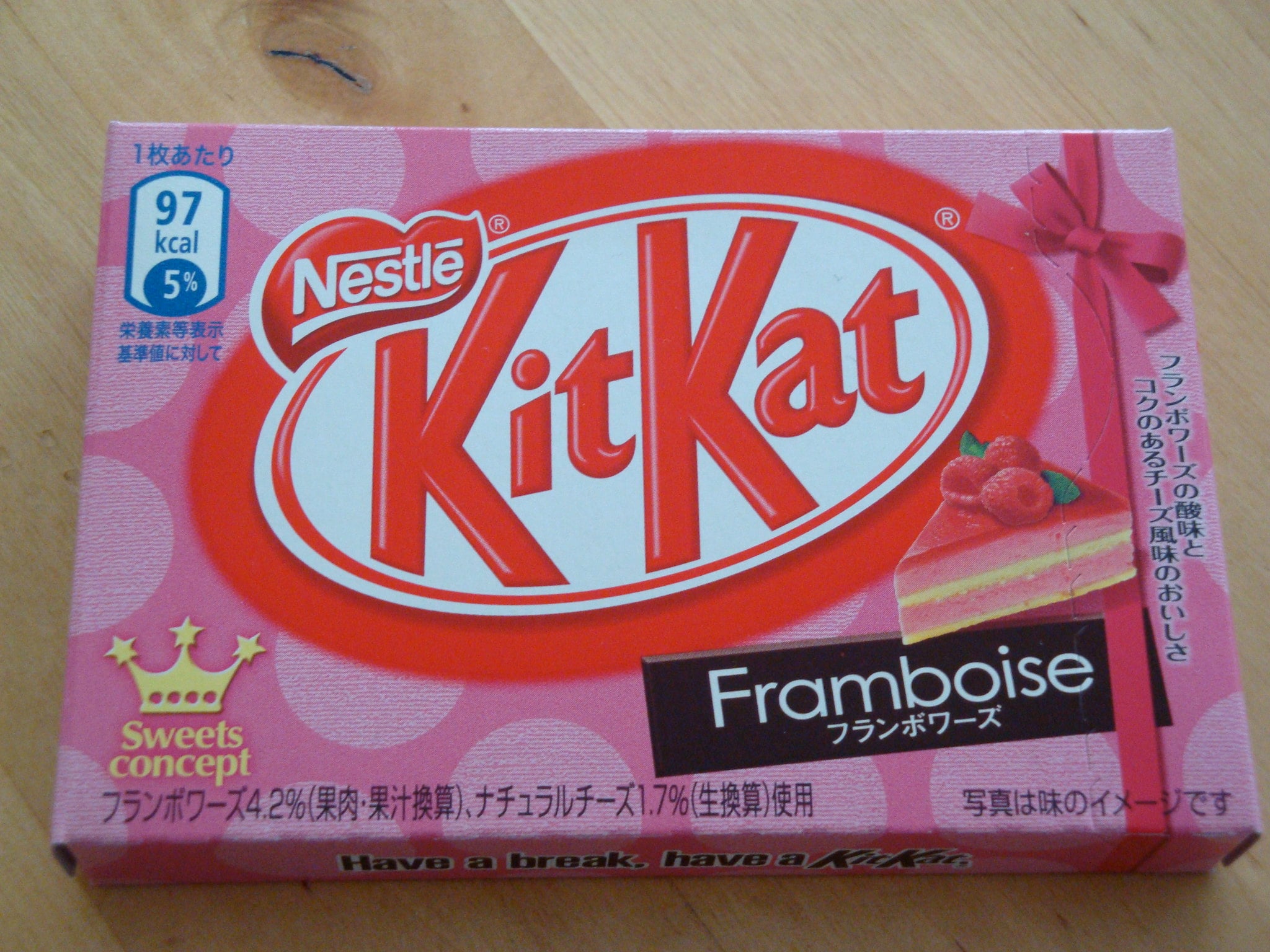 The Kyushu region produces Amaou strawberries, a specially cultivated variety whose name combines the Japanese words for red, round, big, and sweet. These aren’t your average strawberries, and the KitKat reflects that.