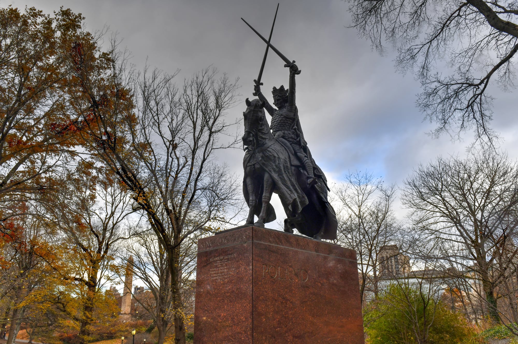 The massive bronze statue of King Jagiello near Turtle Pond holds two crossed swords above his head. In 1986, vandals cut off both swords and stole them, probably to sell the bronze for scrap.