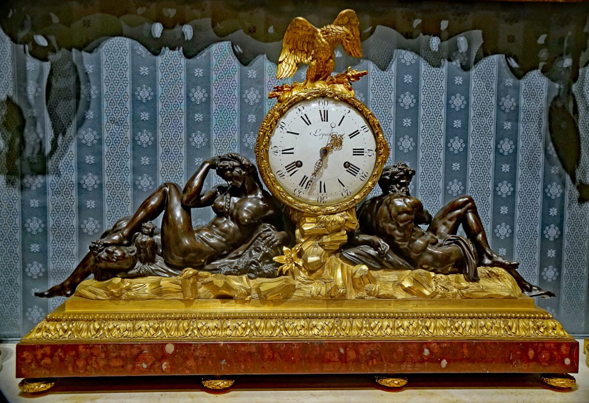 This astronomical clock at the Palace of Versailles displays the time, date, phases of the moon, and positions of planets. Jean-André Lepaute built it in 1753, and it became one of the most talked-about clocks in Europe.