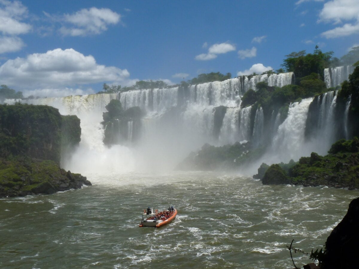 The falls straddle the border between Argentina and Brazil, and both countries have national parks with viewing platforms. The Argentine side puts you closer to the water.