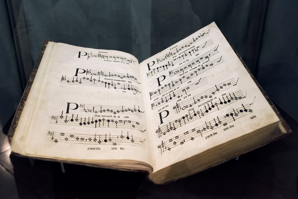 The notes would form the vertical and horizontal beams of a cross, with the most important musical climax happening right at the intersection. Performers sometimes hung these scores on church walls as both sheet music and religious art.