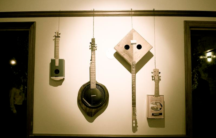 The washtub bass, washboard, and spoons completed the ensemble. Each instrument was repurposed from daily household items.