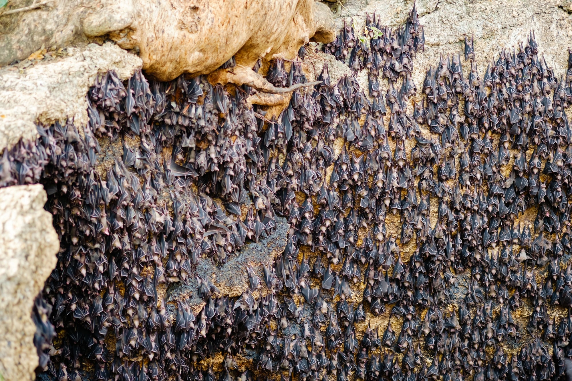 Fruit bats often roost in trees where they’re closer to their food sources. The assumption about caves probably comes from the most visible bat colonies — large groups in obvious locations that humans actually notice.