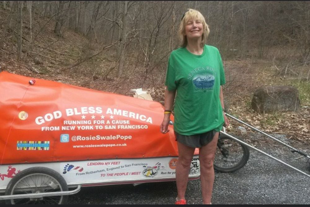 Rosie Swale-Pope ran around the world at the age of 57, covering over 20,000 miles through Europe, Russia, Asia, North America, and Iceland between 2003 and 2008. Her incredible journey began as a way to raise awareness for cancer after losing her husband to the disease.