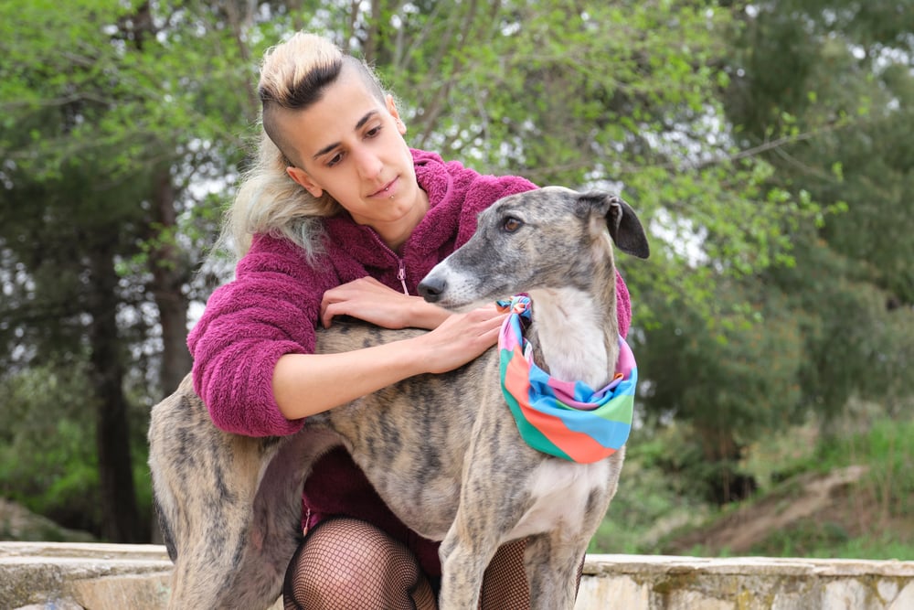 Greyhounds are born to run fast and they have a very elegant structure: their legs are very long, their body is very narrow, and the shape of their head looks like it’s meant for gazing into the far distance. Their owners When the resemblance is there, usually also share the same thin shapes and the same kind of slightly sad look.